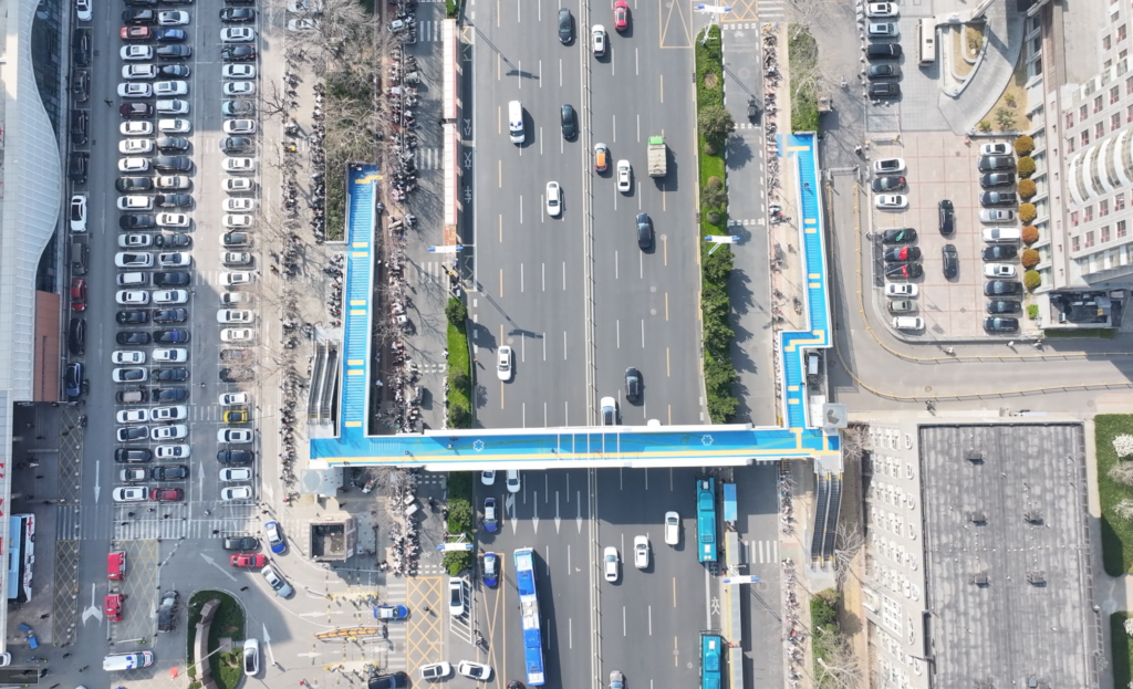 山东济南千佛山医院附近的过街天桥,最近也在网上火爆出圈。