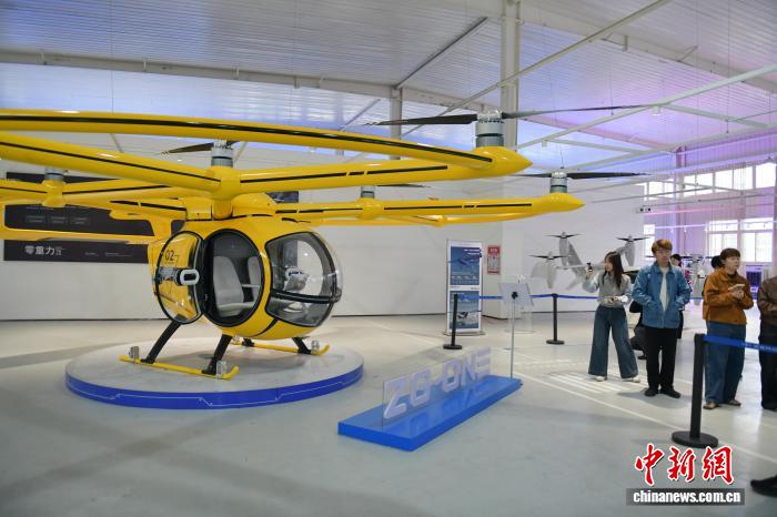 4月13日,在安徽合肥零重力飞机工业(合肥)有限公司,媒体代表在参观ZG-ONE“鹊飞”多旋翼eVTOL。 中新社记者 储玮玮 摄
