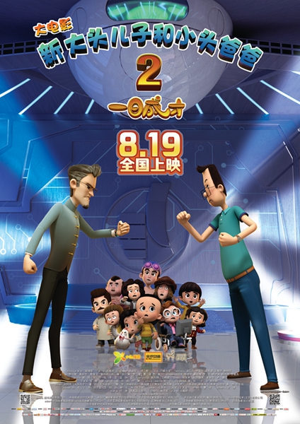 由央视动画有限公司出品,鹿鸣影业有限公司、中央电视台少儿频道、中国广播电影节目交易中心、北京亚细亚影视制作发行有限公司、西安曲江影视(投资)集团有限公司、合一信息技术(北京)有限公司联合出品的中央电视台全版权动画电影《新大头儿子和小头爸爸2一日成才》将于8月19日登陆全国各大院线。