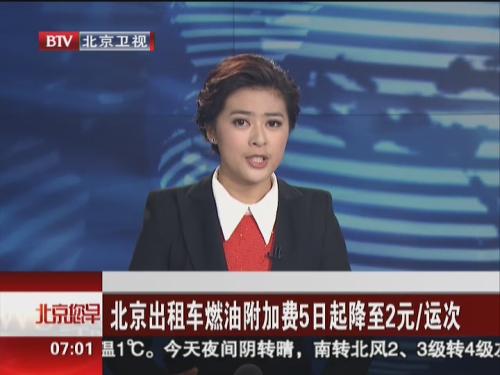 随着国家下调成品油价格后,北京市发改委昨天发布通知,从明天起,出租车燃油附加费从3元/运次降至2元/运次,路程在3公里以内的乘客不收取该项费用。