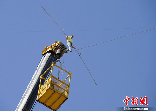 美国特技大师表演高空走钢丝