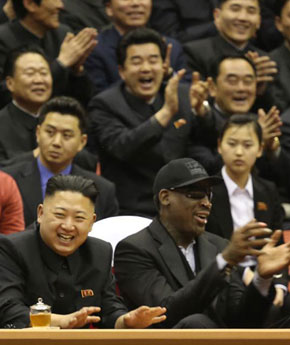 朝鲜:金正恩与罗德曼同看朝美篮球赛