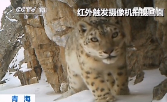 青海:红外摄像机再次拍到野生雪豹(视频截图)