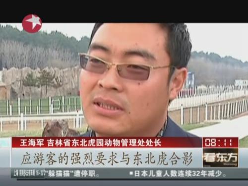 “5月1日当天,虎园内游人爆棚,当时有游人提出与东北虎零距离接触并拍照。东方动物表演团的驯兽师同意了游人的要求,这才发生了‘骑虎拍照’事件。”王海军说。