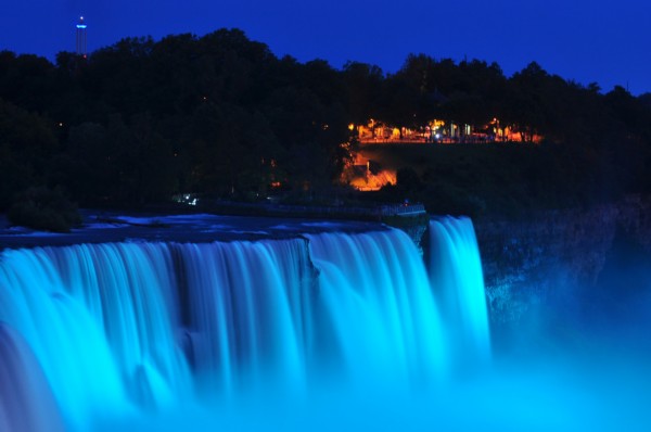 尼亚加拉瀑布被点亮呈蓝色庆英王室添丁