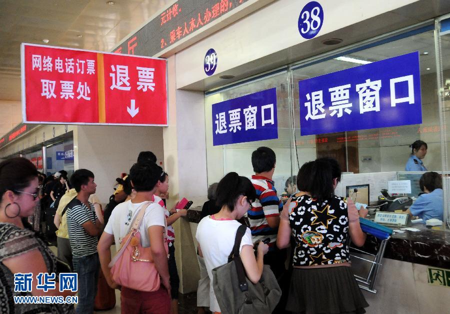 8月26日,旅客在北京火车站售票大厅办理退票业务。自2013年9月1日起,铁路部门将调整火车票退票和改签办法,实现火车票全国通退通签,同时实行火车票梯次退票方案。全国通退通签,即旅客退票和改签由原来的票面指定的开车时间前仅能在购票地车站或票面乘车站办理,改为在票面指定的开车时间前,可到任意一个车站办理。梯次退票方案,就是指票面乘车站开车前48小时以上的,退票时收取票价5%的退票费;开车前24小时以上、不足48小时的,退票时收取票价10%的退票费;开车前不足24小时的,退票时收取票价20%退票费。新华社发(王振 摄)