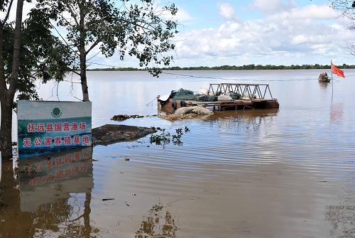 黑龙江抚远段洪水将抚远县大力加湖鲟鳇鱼养殖繁育基地完全冲毁,210万斤鲟鳇鱼大多窒息死亡。这座我国最大的鲟鳇鱼繁养基地蒙受了巨大的生态损失。