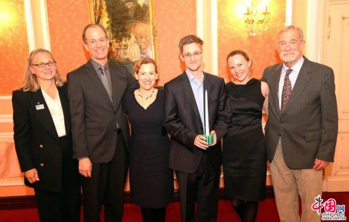 9日的颁奖仪式在莫斯科一处秘密地点举行。据信,这是斯诺登自今年8月获得俄罗斯临时庇护后,与其美国同胞进行的首次面对面接触。