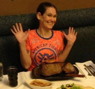美国女子3分钟内吞4斤牛排 刷新世界纪录
