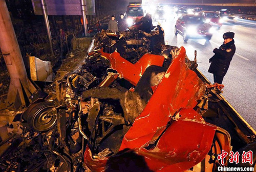 北京一法拉利高速出事故 瞬间成碎片致1死2伤