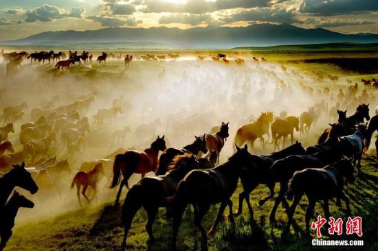 天马故乡新疆昭苏现万马竞渡