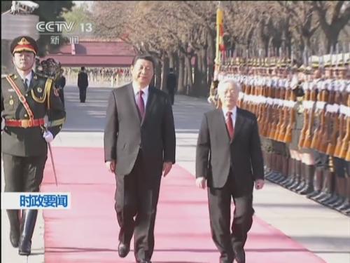 会谈前,习近平在人民大会堂东门外广场为阮富仲举行欢迎仪式。