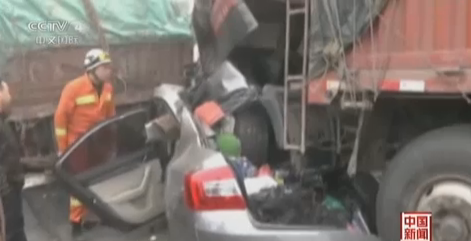 江西:沪昆高速四车追尾致一死三伤(视频截图)