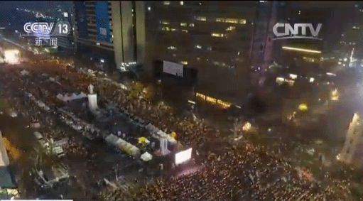 延时摄影记录韩国大规模民众集会