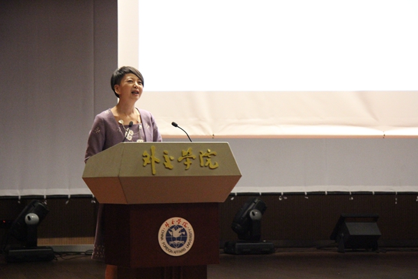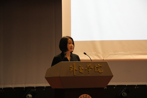 决赛开始,外交学院党委副书记张瑱代表主办方致辞。张书记首先对莅临决赛的嘉宾、朋友表示了热烈欢迎,而后讲到,外交学院设计推出模拟新闻发言人大赛等一系列全国大学生竞赛,其意义和目的就是为大学生们提供锻炼交流的实践平台,提升高校学子的政治思想素质、沟通交流能力、应急反应能力等全方位综合素质,使其将来投身中国特色社会主义事业做好准备。