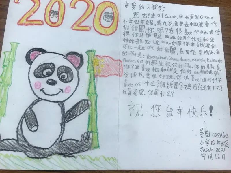 鼠年春节前夕,卡斯卡德小学50名四年级学生提出自己动手制作新年贺卡送给中国的习爷爷,写上自己想说的话,祝习爷爷新年快乐。