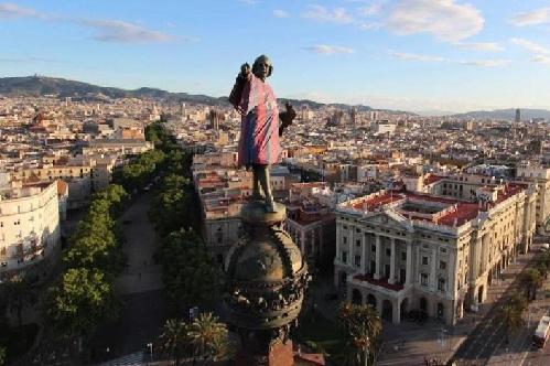 近日,巴萨官方推出了下赛季的新球衣,而俱乐部的球衣赞助商也别出心裁,为了达到广告宣传的效果,特意给巴塞罗那市内哥伦布广场上那座巨大的哥伦布雕像穿上了新款的巴萨球衣。