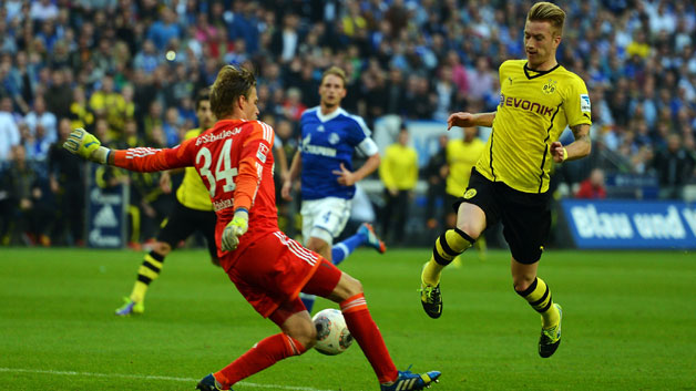 北京时间10月26日21:30,2013-14赛季德甲第10轮重头戏,沙尔克04主场1-3负于多特蒙德,黄黑军报了上赛季鲁尔德比被双杀之仇。第14分钟,奥巴梅扬为黄黑军先拔头筹,第30分钟,博阿滕打丢点球;第51分钟,沙欣打出一记世界波,第62分钟,马克斯-迈尔为沙尔克扳回一城,第74分钟,布拉什奇科夫斯基再入1球为多特蒙德锁定胜局。