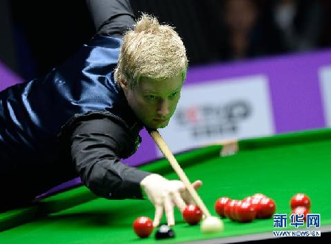 10月28日,尼尔·罗伯逊在比赛中。当日,在四川成都举行的2013世界斯诺克国际锦标赛第一轮比赛中,澳大利亚选手尼尔·罗伯逊以6比4战胜英格兰选手亚历克斯·戴维斯,晋级第二轮。新华社记者李桥桥摄
