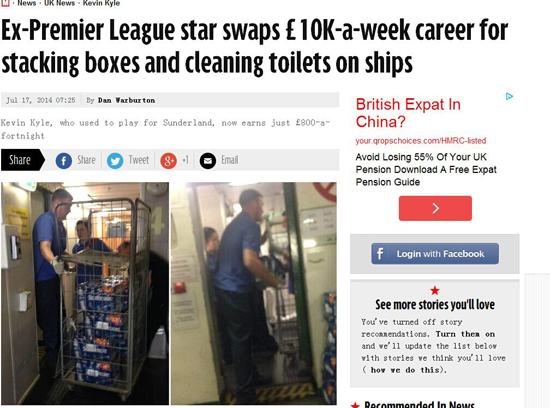 曾从赌博中改过自新的凯文-凯尔,从在桑德兰周薪10000万英镑的球员变为在轮船上推箱子和洗厕所的杂工。33岁的凯文-凯尔现在的收入仅为每两周800英镑,只占以前收入的极小一部分。他正在设得兰群岛的一支舰队的船上工作,该舰队专门服务那些海上工作人员。