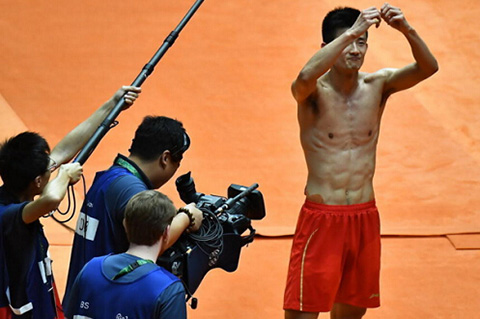 备受关注的羽毛球男单决赛战中,中国选手谌龙2比0战胜马来西亚名将李宗伟,获得自己的第一枚奥运金牌,这也是中国羽毛球队本届奥运会上的第二枚金牌。谌龙把球衣扔向看台,身披五星红旗,霸气绕场奔跑,一跃而上领奖台,眉宇间的得意与稚嫩,像极了出道的林丹。中国羽毛球未来的旗帜,或将由谌龙扛起。