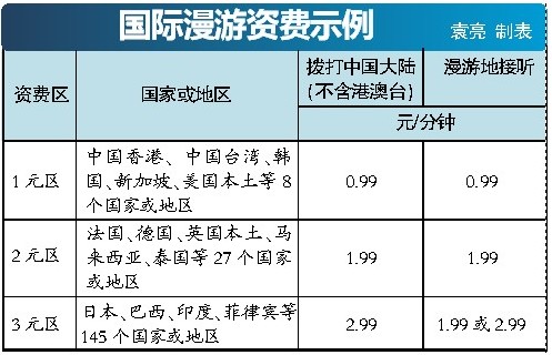 今年2月,中国移动面向美国、韩国、新加坡、中国香港等180个热门出访国家和地区,根据用户最常用到的“拨回大陆、漫游地被叫”两项资费,推出了“国际及港澳台漫游1元/2元/3元区”新资费。中国移动用户漫游到这些国家和地区时,主叫和被叫一般为0.99元/分钟、1.99元/分钟或2.99元/分钟。