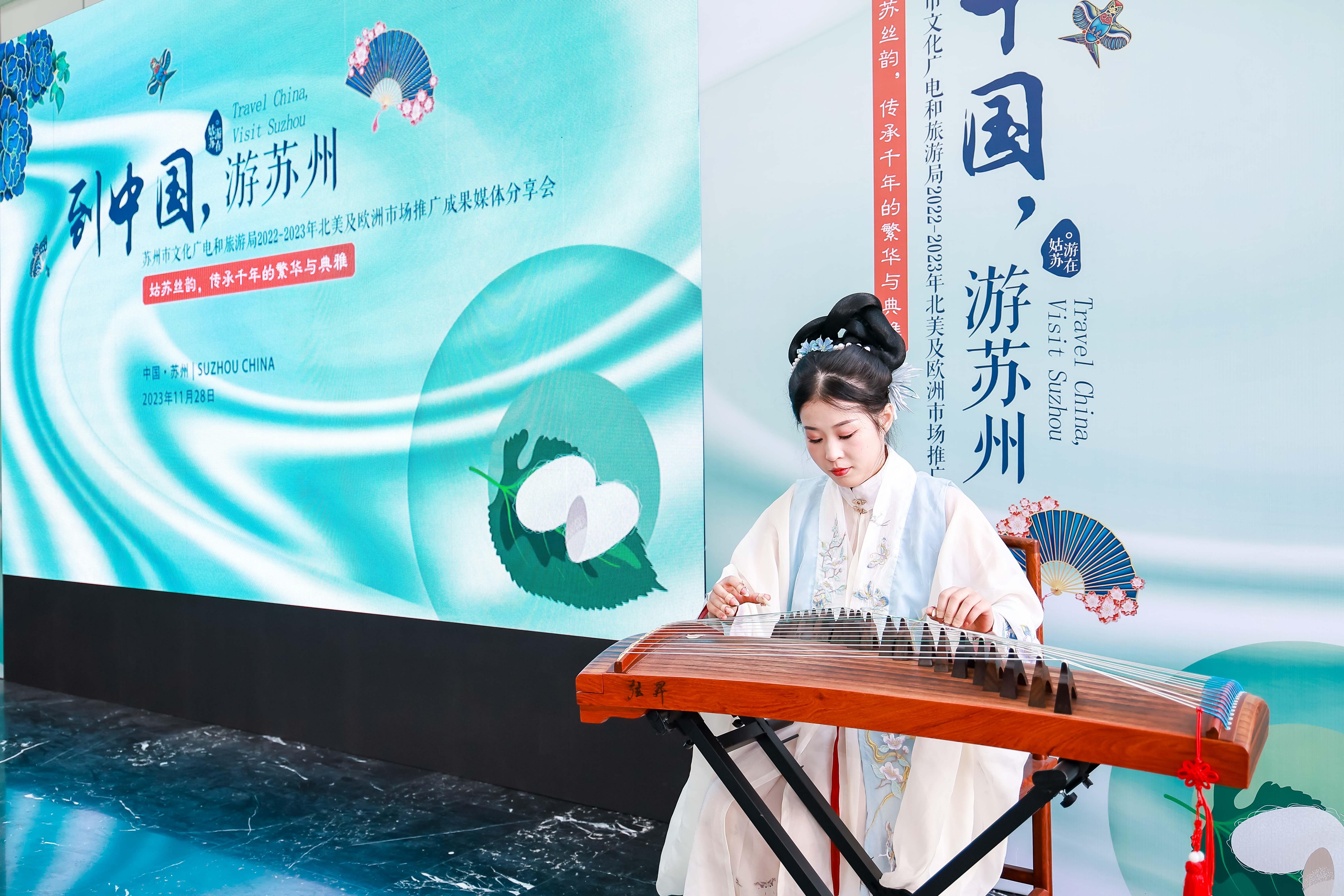 第一场“苏州走进芝加哥”专场推介会。活动上来自苏州园林的8块山石、尽显东方之美的旗袍、江南传统乐曲和舞蹈,以及现场苏州推介,为芝加哥媒体、达人和旅业专家开启了跨越时空的苏州之门。5月,苏州市文化广电和旅游局亮相希腊卡拉玛塔2023年 TBEX全球旅行博主峰会,向参加峰会的400 位旅行达人、内容创造者以及旅游行业意见领袖推广以苏州丝绸为亮点的苏州文化传承和旅游资源。活动还携手苏州丝绸博物馆,用唯美灵动的汉服展示、江南音乐舞蹈表演,演绎苏州丝绸和江南文化。苏州是首个且唯一参加TBEX峰会的中国旅游目的地。