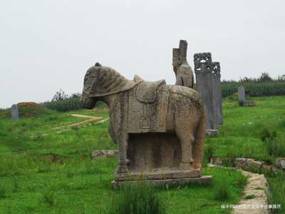 牌坊为青色花岗岩刻造,气势雄伟,花纹雕饰精美。墓前有石狮、石羊、石马、石人各一对,是辽宁省现存规模较大、保存较完整的明代石刻群。