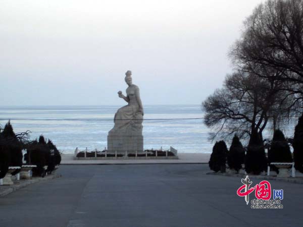 兴城海滨是迷人的,尤其是海滨第一浴场即兴海湾更加靓丽多姿。当您步入海滨第一浴场,兴目望去,是一座四柱三门二楼单檐庑殿门式正门,牌坊上边是著名书画家范曾题写的“洪波涌起”和“古城在望”八个大字。超过此坊,便走进如诗如画的兴海湾。兴海湾入口处一尊用花岗岩雕琢的的高大的菊花女塑像正颌首相迎。菊花女就是“菊花杀恶龙”传说中的菊花姑娘,她是美丽、善良、勇敢、智慧和自我牺牲精神的化身,是人们心目中的英雄。