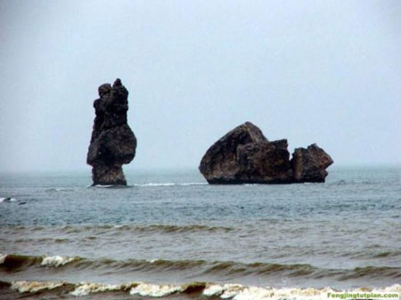 姜女石遗址位于辽宁省绥中县,濒临渤海湾。