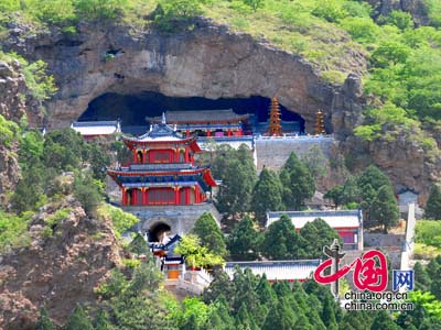 灵山寺上院原名洞天寺,依山而建,因洞中有院院中有洞而得名。上院主要表现了鲜明的道教文化,建有鸿钧殿、无极宫、仙翁殿、地母楼、玉皇殿、三皇殿、道祖殿。无极洞顶天然太极图被称为奇观,吸引了无数游人与香客。石洞内呈红晕紫气,天眼阳光四射,可容千人。洞壁万佛显像,古龙侧卧,气氖神圣庄严。