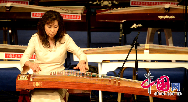古筝大师王昌元在颁奖晚会现场演奏古筝名曲《高山流水》