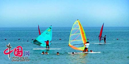 辽宁省葫芦岛市兴城海滨风景名胜区位于辽宁省葫芦岛市兴城,依山面海,面积约42平方公里,海滨濒临景色如画的辽东湾,素有“第二北戴河”之称,1988年被定为国家重点风景名胜区。名胜区集山海、古城、温泉于一地,分为五个景区,有50多个景点。兴城是著名古战场“宁远卫城”故址。宁远卫城是明朝边防重镇,现保存完好,是国内保留完整的四座古城池之一。