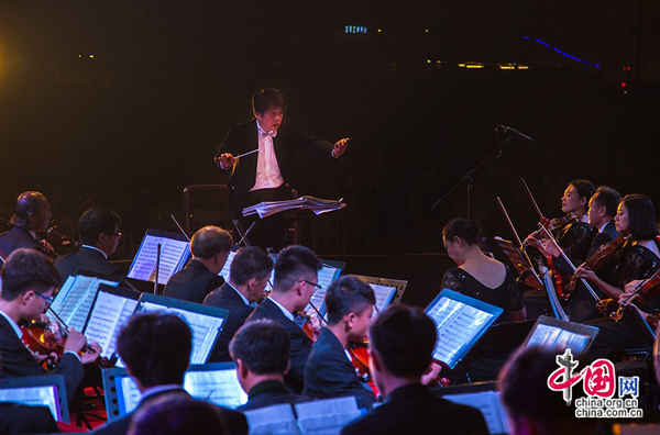 葫芦岛举办纪念抗日战争胜利70周年市民音乐会,葫芦岛爱乐乐团交响乐演出。