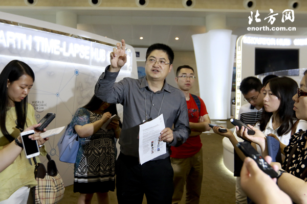 达沃斯筹备办张峻处长向记者介绍筹备情况
