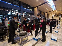 记者有序安检入场