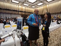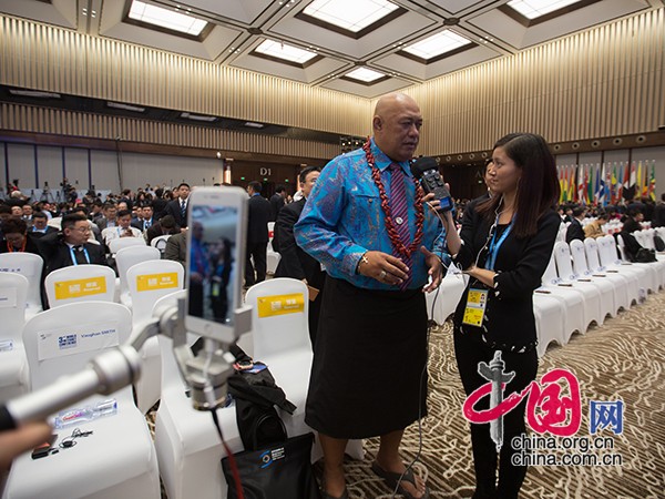 大会开始前 嘉宾接受采访