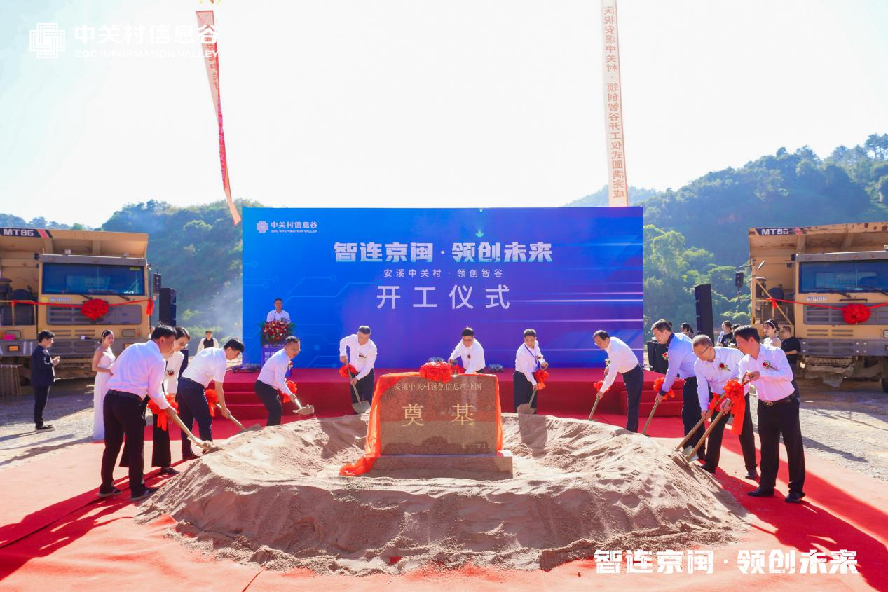 在安溪中关村·领创智谷开工仪式上,与会的领导嘉宾共同为园区奠基石揭彩、培土。据了解,该项目毗邻安溪主城区,分两期开发建设,规划用地450亩、建筑面积70万平方米。园区锚定“光电产业创新发展高地”“京闽协同创新合作示范标杆”目标,以电子信息行业龙头企业为主、链接整合上下游产业资源,建设信息科技企业孵化器、加速器和总部集群等平台,全力打造覆盖信息通信、光学、激光、红外、紫外、传感、显示设备制造为主导的光电子先进制造产业集群。园区建成后,将成为安溪加快培育、壮大、应用新质生产力的“主阵地”,并为安溪产业高质量发展插上“腾飞的翅膀”。