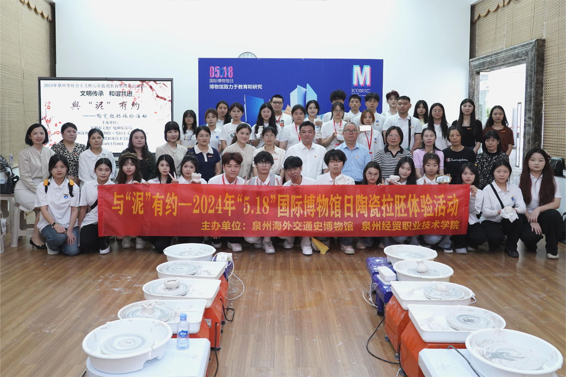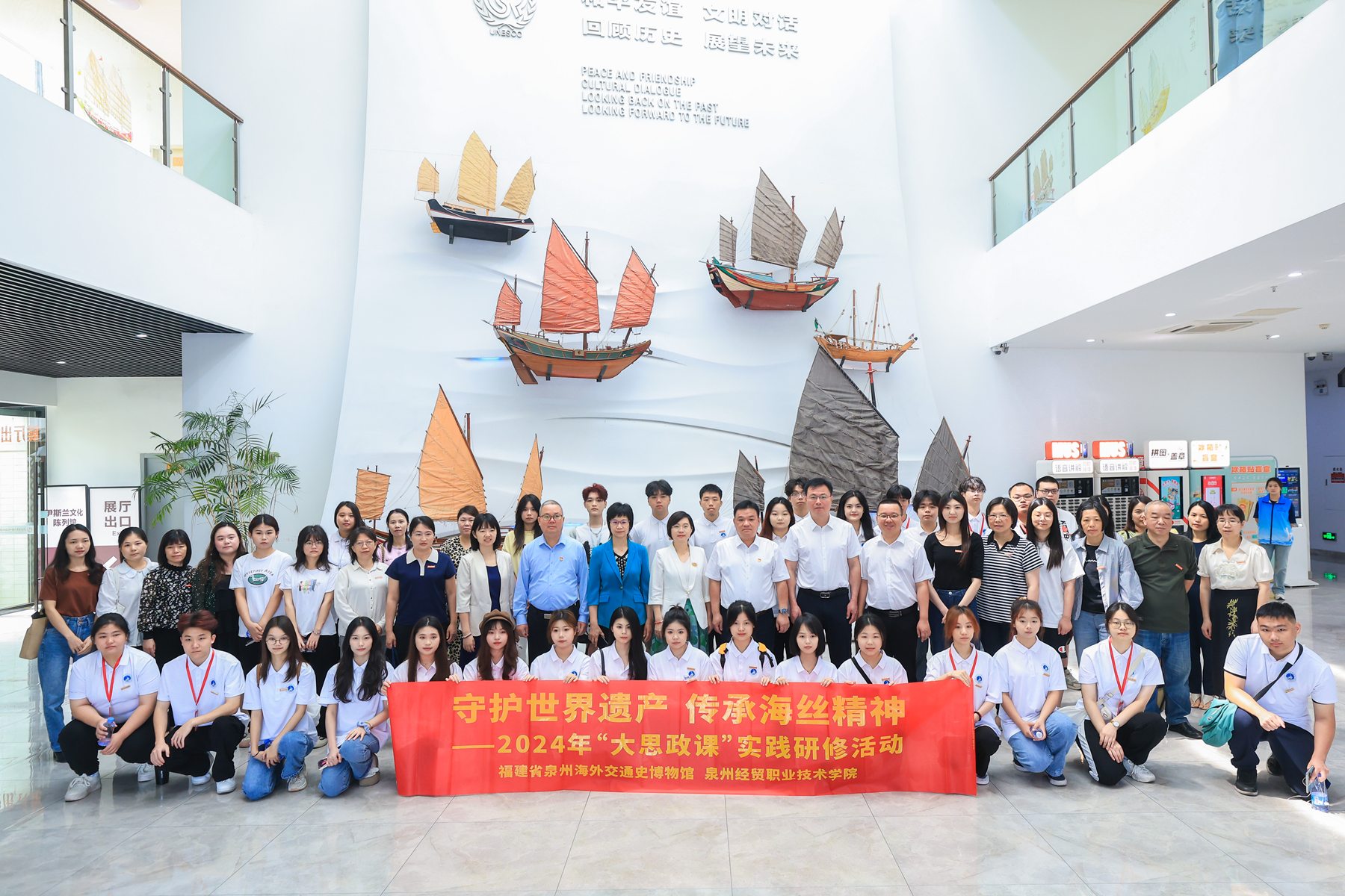 中国网讯 5月18日,泉州经贸职业技术学院与福建省泉州海外交通史博物馆(以下简称“泉州海交馆”)结对共建“大思政课”实践教学基地,开展“守护世界遗产 传承海丝精神”2024年“大思政课”实践研修活动,共话校馆融合“大思政课”,共同探讨合作机制,助力加快构建“大思政课”工作格局,推动思政教育高质量发展。泉州经贸职业技术学院党委书记廖伏树,泉州市文化广电和旅游局党组书记、局长吕秀家,致公党泉州市委会主委、泉州海交馆馆长丁毓玲,泉州经贸职业技术学院党委委员、副院长沈永希,泉州市文化广电和旅游局党组成员、副局长出宝阳等出席活动,泉州经贸职业技术学院思想政治理论课教研部教师、习近平新时代中国特色社会主义思想读书社、青年马克思主义社团等学生参加。
