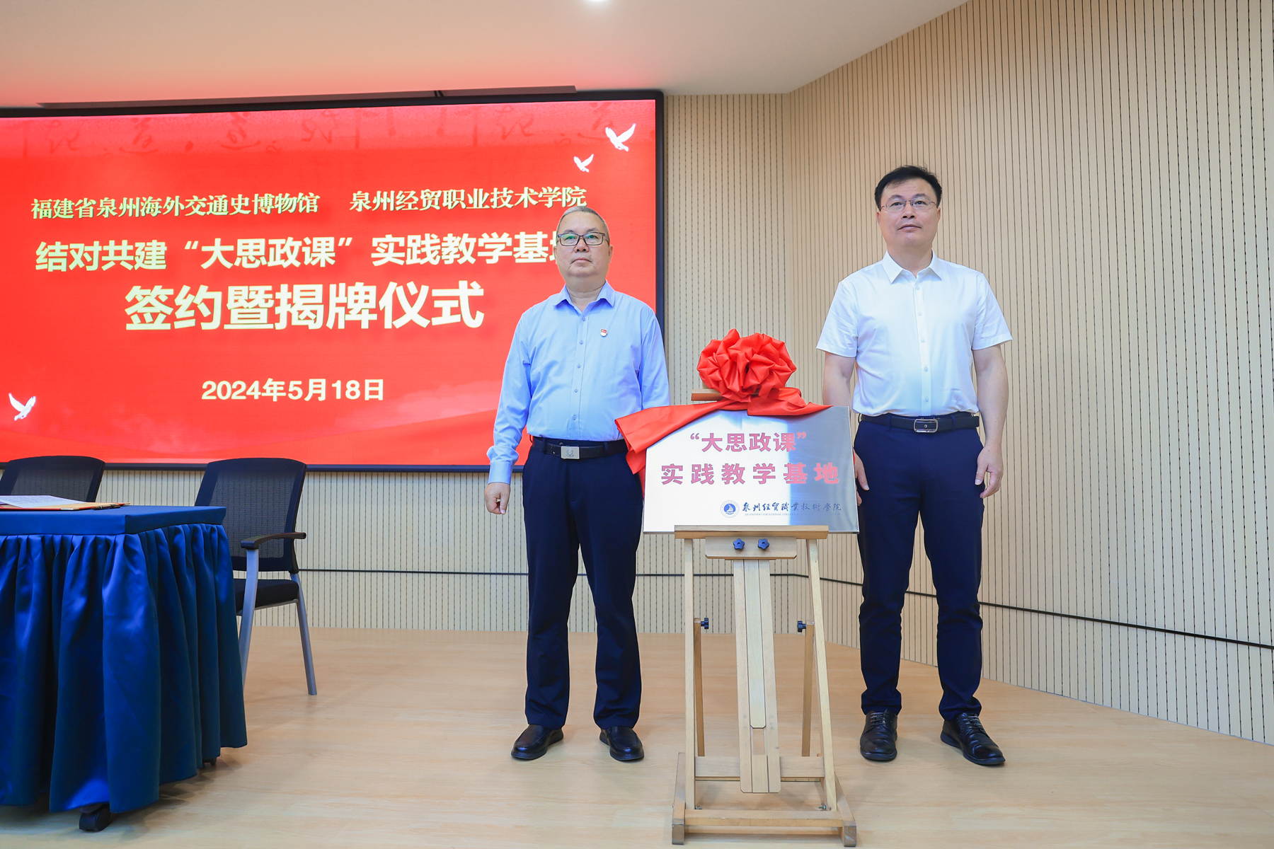 随后,丁毓玲与沈永希签署共建协议,出宝阳与沈永希共同为泉州经贸职业技术学院“大思政课”实践教学基地揭牌。