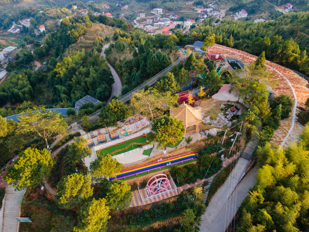 自2013年国兴绿谷正式入驻黄岭村,并与黄岭村开创“村企共建、以企带村”合作模式以来,昔日的黄土高坡慢慢发生了华丽的蜕变。“国兴绿谷,位于黄岭村五阆山主峰,占地面积近万亩,累计投资超过两个亿,由最初的茶叶种植基地发展至如今集观光休闲旅游、酒店住宿、茶叶加工销售等为一体的综合性生态旅游茶庄园。作为村企共建模式的主角,伴随着黄岭村从一个名不见经传的偏远落后村落变成如今的深山花岛,国心绿谷也从一个不知名的企业变成安溪人休闲旅游的度假胜地。”据黄岭村党支部书记黄新田介绍,黄岭村首批村企共建的项目为投入乡村振兴财政资金100万元作为投资款参与国心绿谷玻璃观景台、云端滑道、悬崖秋千等游乐项目,实现每年18万元的村财收入。