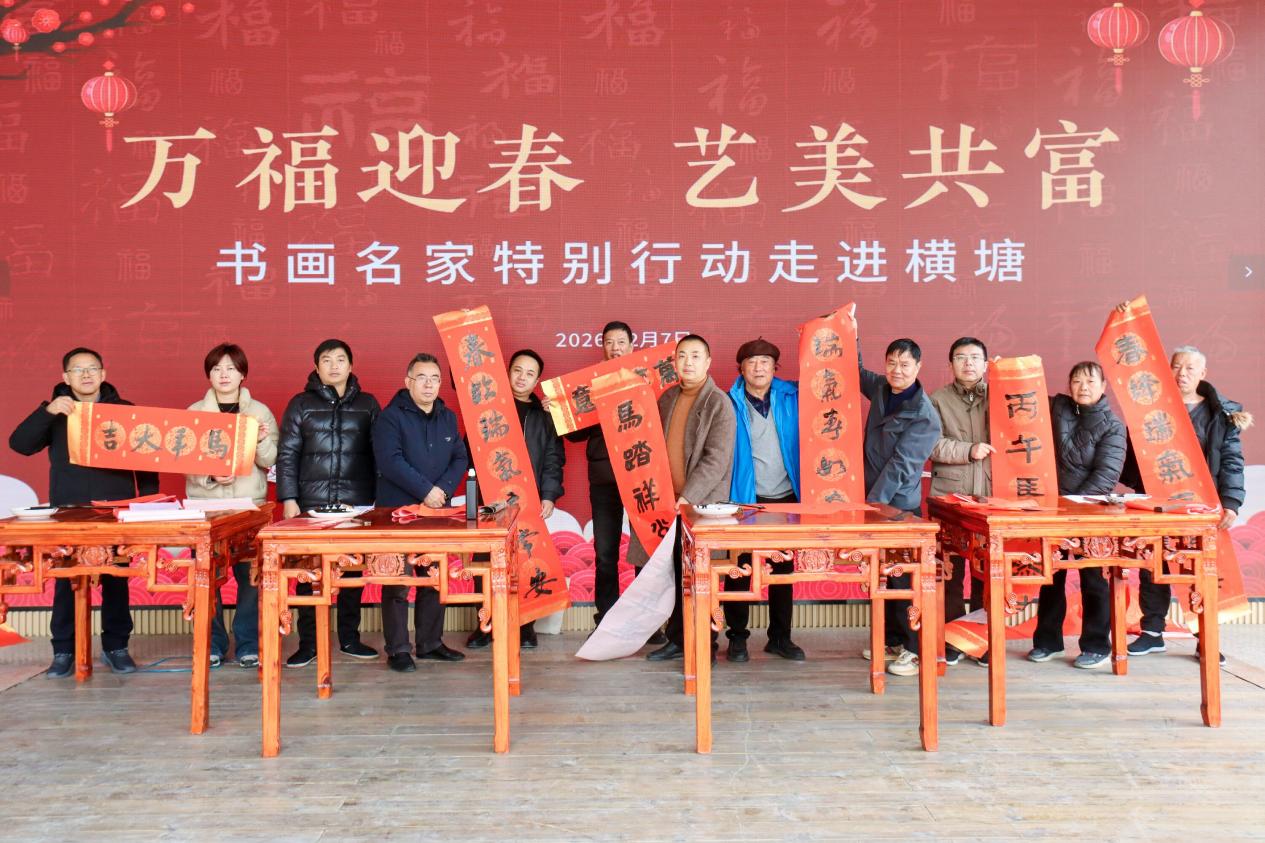 2月7日上午,浙江省台州市椒江区下陈街道横塘村文化礼堂(农家书屋)内暖意融融、墨香四溢。“作家专家名家进书屋”暨“万福迎春 艺美共富”书画名家特别活动在此举行。李朝建、何昌廉、陈天谷、王林坚、董灵星等多位书画名家齐聚,将理论宣讲、阅读推广与艺术惠民深度融合,为冬日乡村送去丰盛的文化暖流和新春祝福。