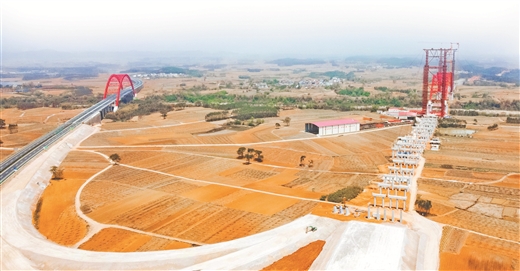 中国铁建投资集团投资建设的鹿寨—钦州港公路(柳州至覃塘段)TJ3标高速路施工现场机械轰鸣,正加速推进路基填筑与桥梁架设作业。张馨/摄
