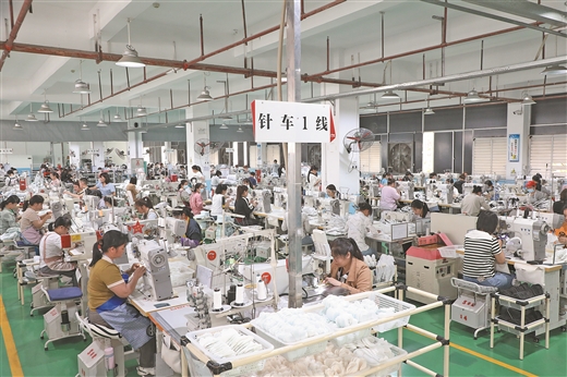 在来宾宁聚力鞋业智能化生产线上,工人们正将一双双运动鞋打包装箱。企业凭借8条全速运转的生产线,日产量达1.6万双,订单已排至今年8月。宁聚力鞋业副总经理刘辉介绍:“今年一季度产值同比增长22%,延续了良好发展势头。2024年企业生产374万双鞋、实现3.3亿元产值,今年将冲刺427万双的年产量目标,全年产能预计比去年提升14%,产值有望突破4亿元大关。”