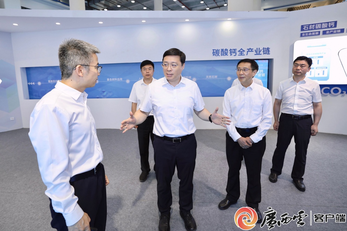 7月10日,自治区代主席韦韬深入贺州市调研产业发展。韦韬来到广西东融石材碳酸钙交易中心,调研了解贺州碳酸钙产业集聚发展情况。广西云-广西日报记者 邓华 摄