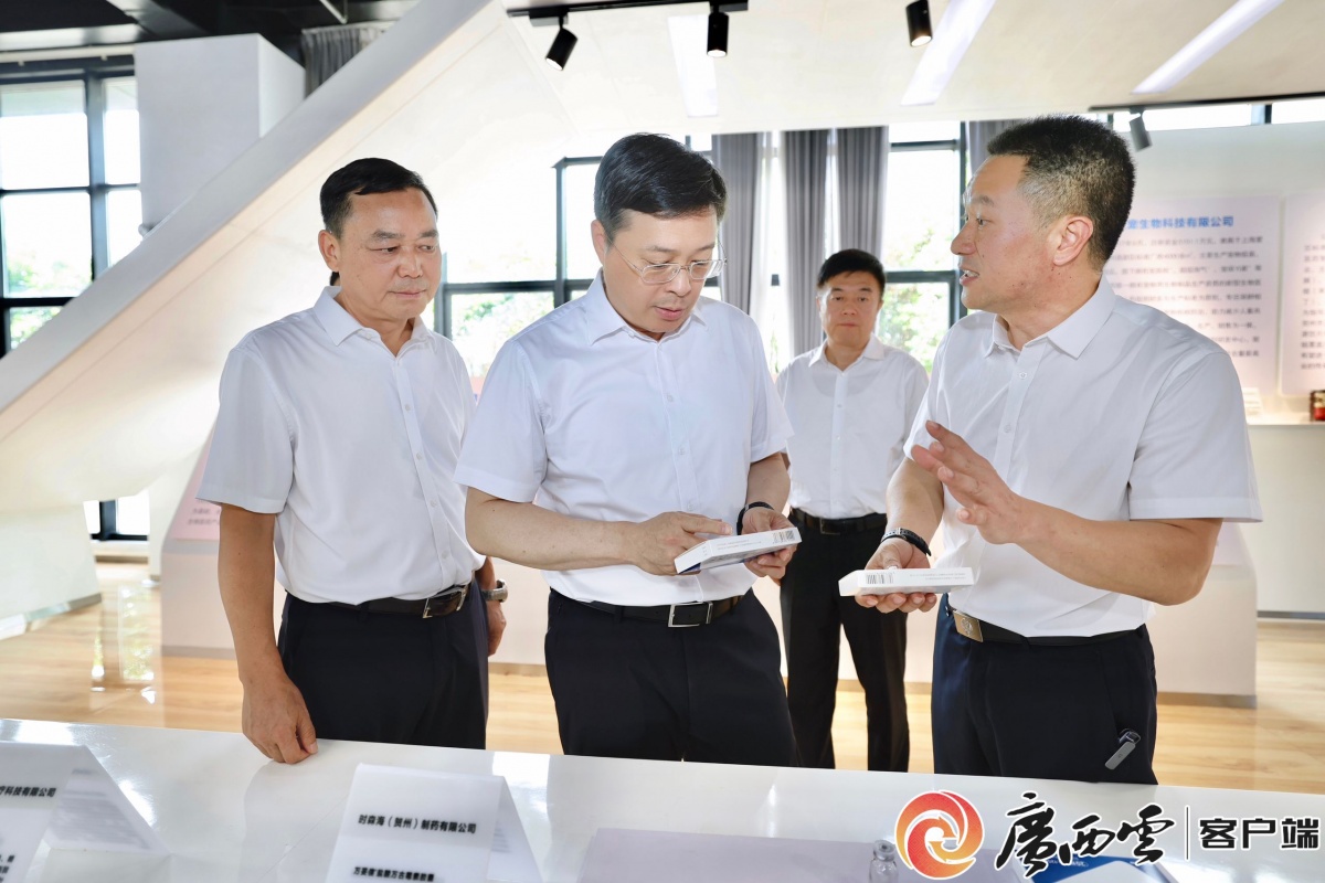 在贺州高新技术产业开发区管委会,韦韬调研了解贺州市主动服务和融入粤港澳大湾区建设、新产业新技术转化培育等工作推进情况。广西云-广西日报记者 邓华 摄