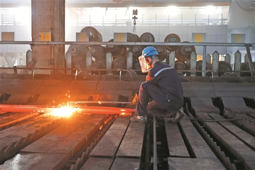 工人正在切割钢块。广西云-广西日报记者梁乾胜/摄