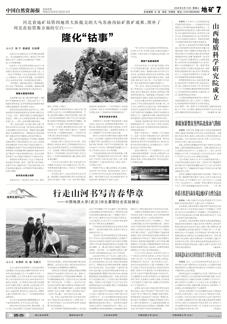 新华社、人民网、央视新闻等中央主流媒体对自然资源部公布的2025年上半年全国找矿突破成果进行了报道。其中,地质四队在河北省承德市隆化县钴矿找矿成果新增钴资源量2.7万吨,达到大型规模,位列38处新发现矿产地,成为全国典型成果之一。