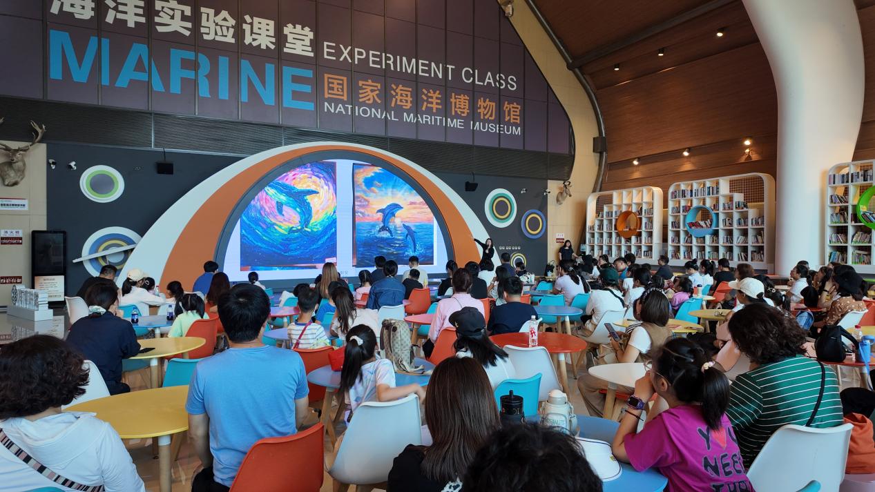 10月1日当天,两项核心活动同步开展,让节日氛围与文化气息深度融合。 一方面,“海洋杯”获奖信息在国家海洋博物馆创客空间正式对外公布,吸引众多参会者、家长及艺术爱好者驻足关注,现场同步展示部分优秀获奖作品片段,直观呈现赛事成果。 另一方面,组委会精心策划的“涂鸦彩绘创作美育讲座与互动实践活动”。