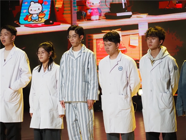 一个由学生自编自导的剧目《抉择》,讲述了一位年轻医生面对患者家属以各种形式表达的“感谢”时的心路历程。当扮演医生的同学在舞台上说出“我收下的不是一份礼物,而是作为医生对自己信念的背弃”这句台词时,台下许多同学深受触动。